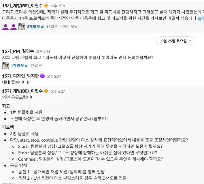 솔직하고 자유롭게 의견을 내며, 피드백을 주고 받을 수 있게 됨