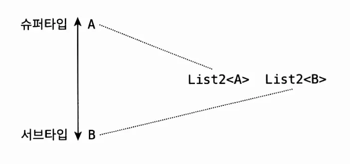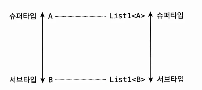 불변: 제너릭 타입이 타입 인자의 서브타입 관계를 무시하는 것