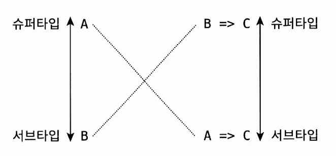 B 타입 (슈퍼타입) 의 자리에 A 타입(서브타입)이 오더라도 타입검사기에는 문제가 없음