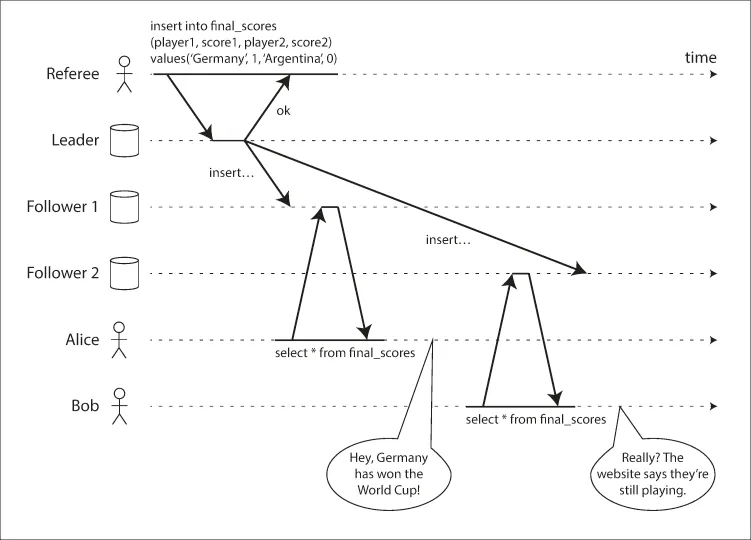 뒤처진 캐시나 복제본에서 나오지 않았음을 보장