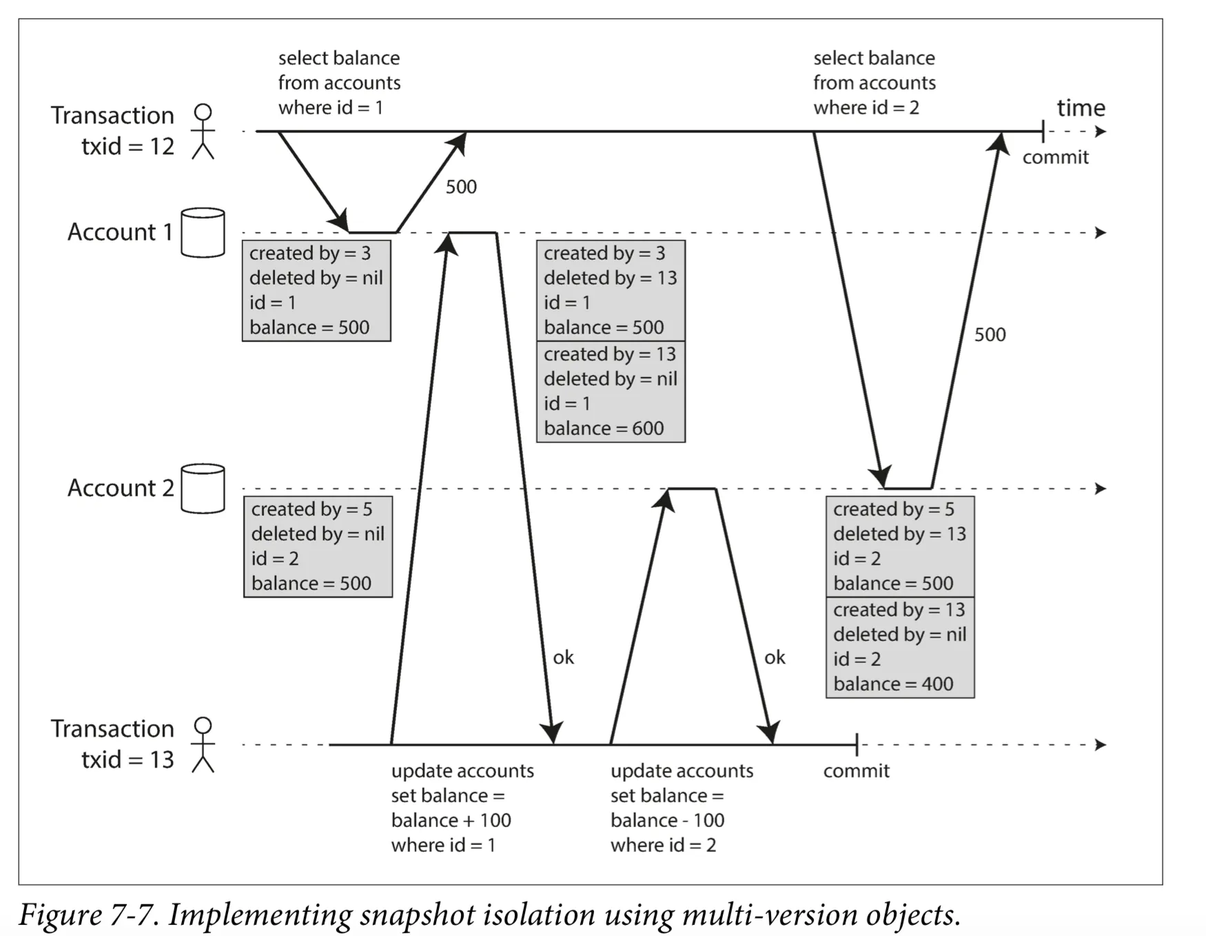 스냅샷 격리는 다중 버전 동시성 제어(MVCC)로 구현됨
