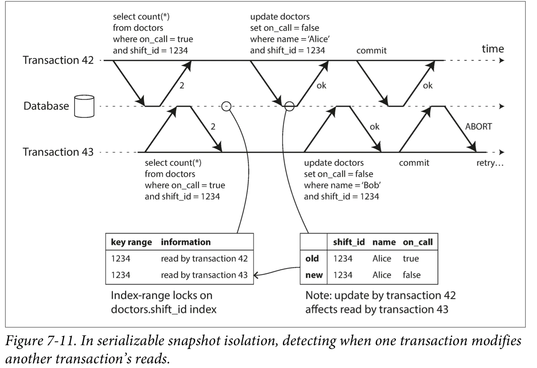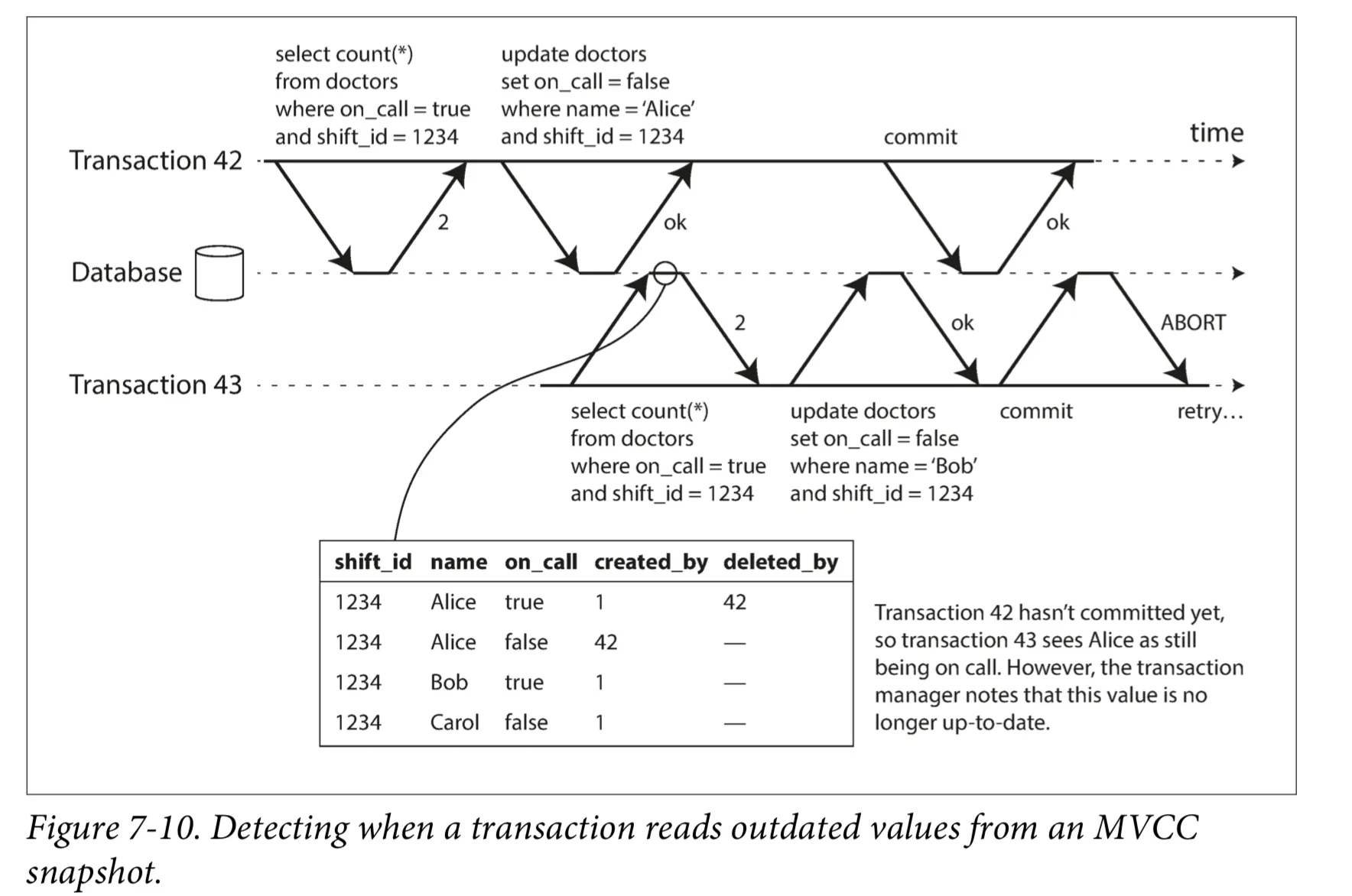 스냅샷 격리 하에서는 트랜잭션이 커밋되는 시점에 원래 질의의 결과가 더이상 최신이 아닐 수도 있음
