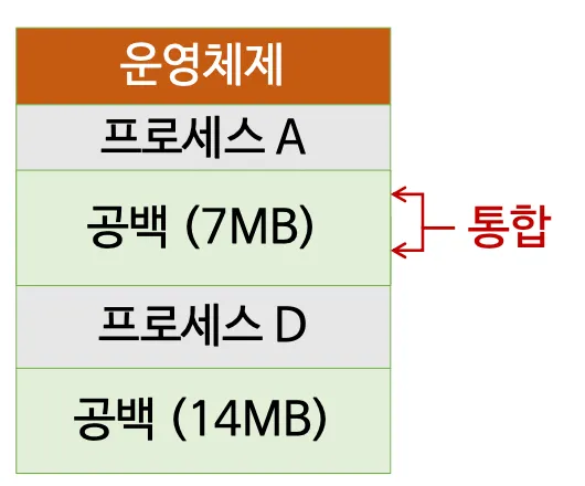 인접된 공백을 더 큰 하나의 공백으로 만들어 외부 단편화 해결