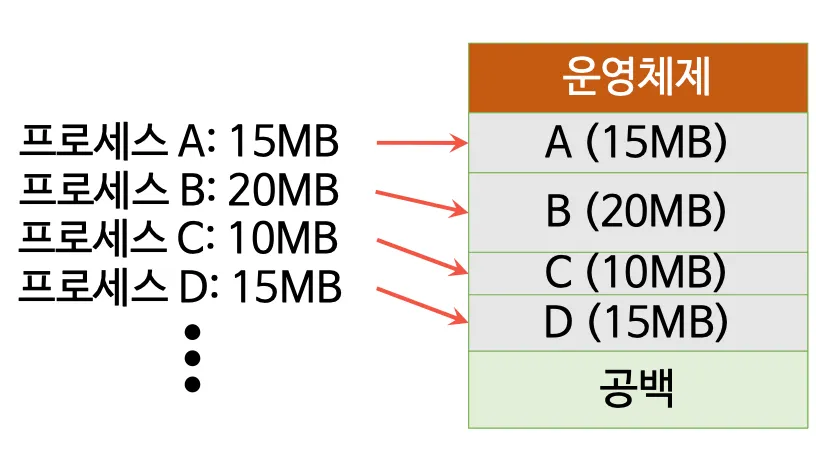 각 프로세스에 필요한 만큼의 메모리만 할당
