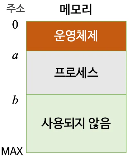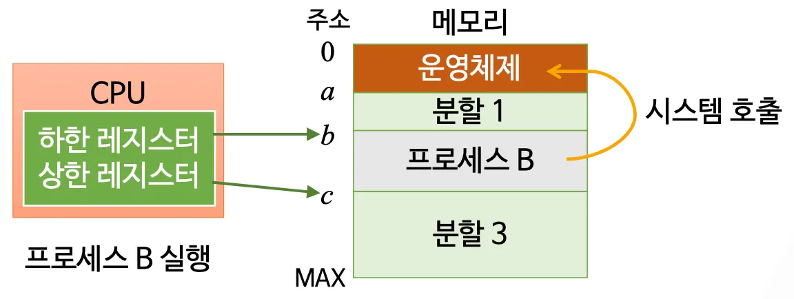 주소 b~c 사이의 할당 영역만 사용하게 레지스터가 막음