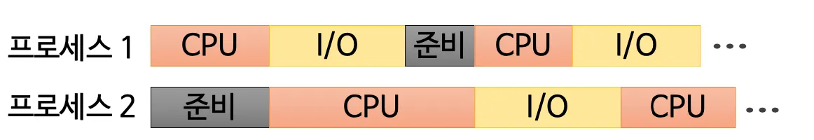 CPU 연산과 입출력을 동시에 함으로써 CPU 이용도와 시스템 처리량 증가