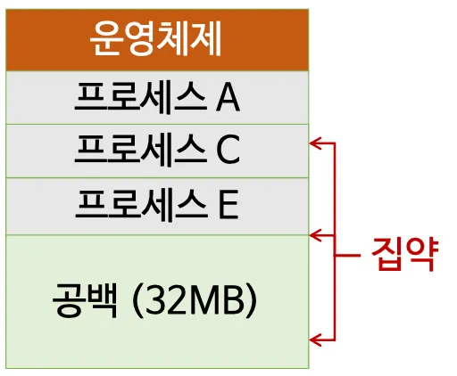 메모리 내에 모든 공백을 하나로 모아 외부 단편화 해결