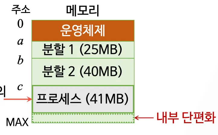 프로세스의 크기가 적재된 분할 영역 크기보다 작아서 분할 영역 내에 남게 되는 메모리 발생