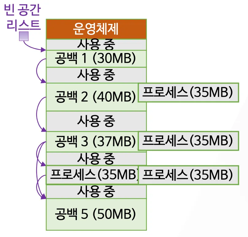 계속 진행되다보면 빈공간 리스트의 앞에는 작은 공간들만 남게 될 수 있음