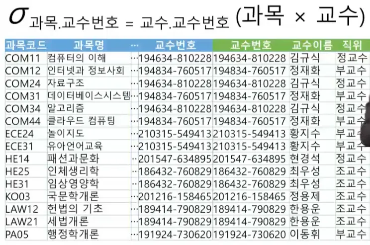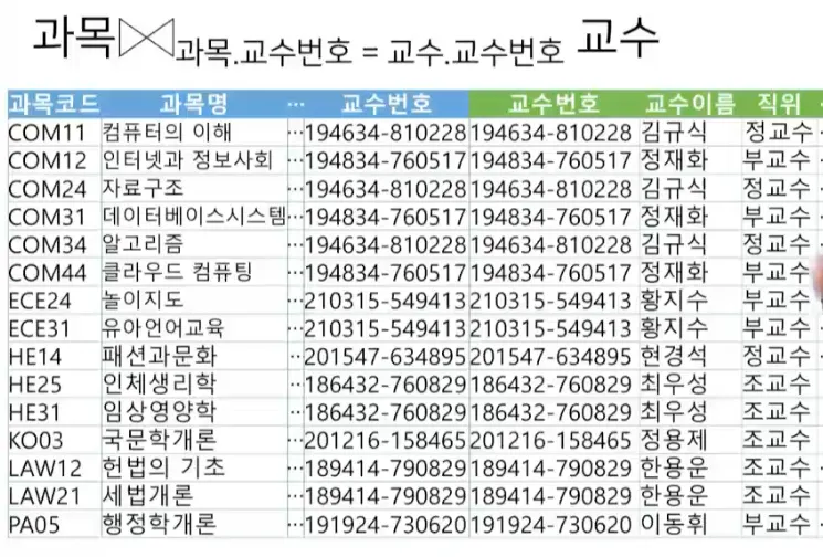 예시 직위가 부교수인 교수의 교수이름을 출력하라