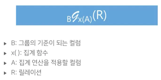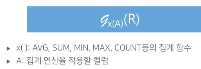 집계 함수를 값들의 집합 또는 레코드의 집합에 적용하는 연산