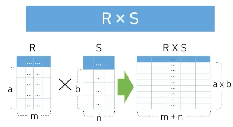 두 릴레이션에 포함된 레코드 간의 모든 조합을 생성하는 이항 연산자