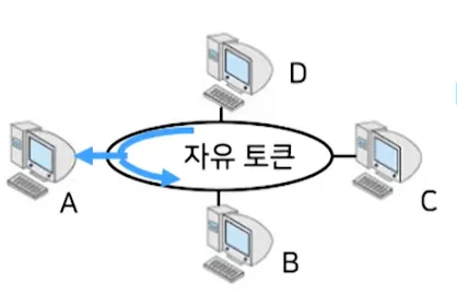 A는 데이터를 전송하기 위해 자유 토큰을 수신할때까지 대기