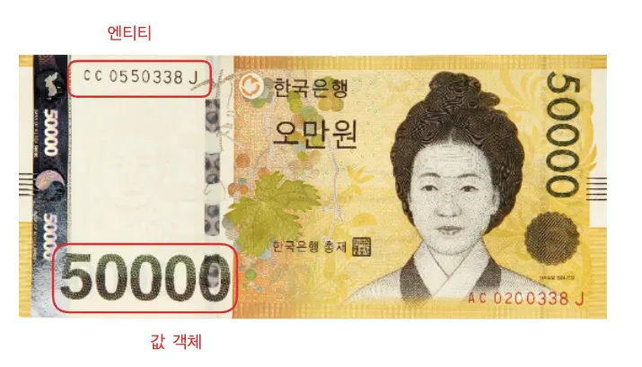 다른 엔티티와 구별하기 위한 식별자(id = 1)를 가짐