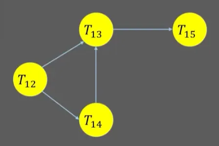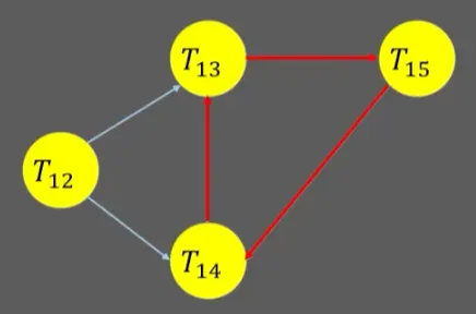 간선 E는 트랜잭션의 순서쌍 (Ti, Tj)로 이루어짐