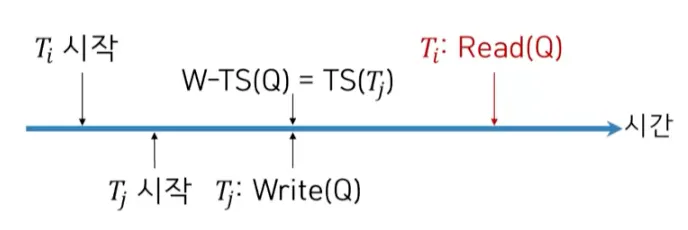 TS(Ti) < W-TS(Q) 이면 Read 연산이 거부되고 Ti는 롤백