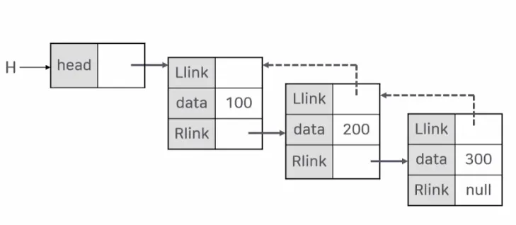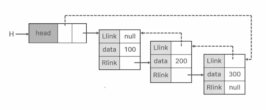 // 이중 연결 리스트의 헤드 노드 구조 정의