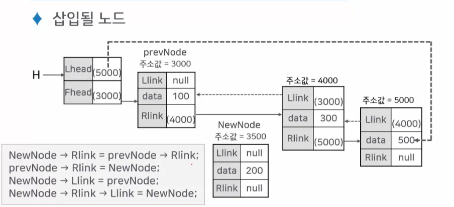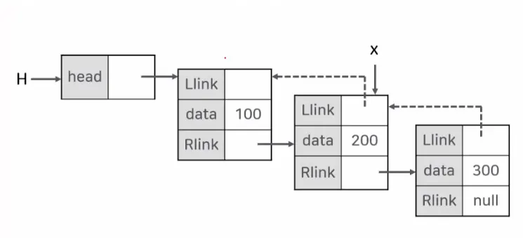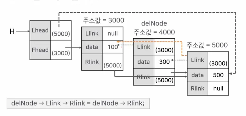 // 이중 연결 리스트에서 데이터의 값이 300인 노드(delNode)를 삭제하는 연산