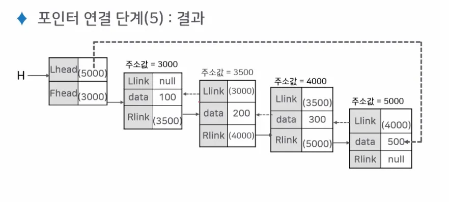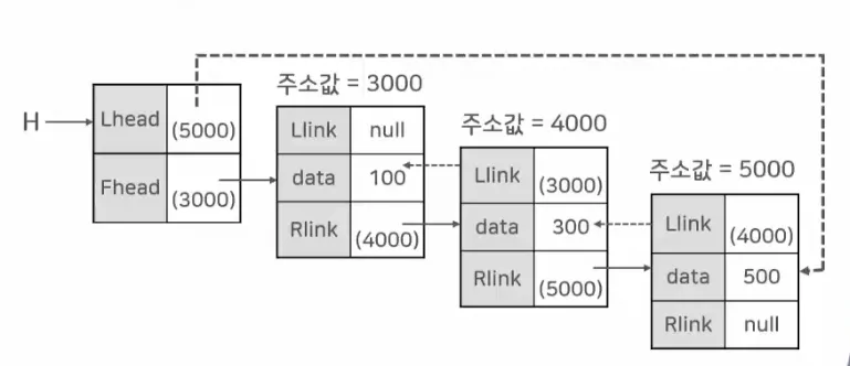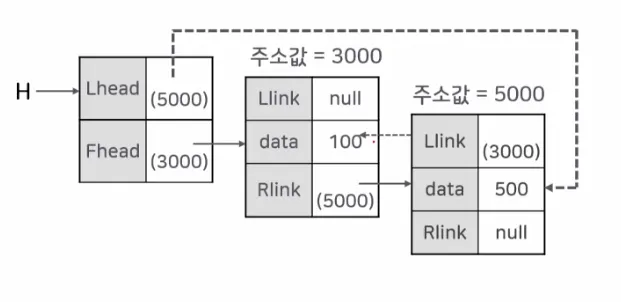 양쪽 방향으로 순회할 수 있도록 링크 필드가 2개 필요