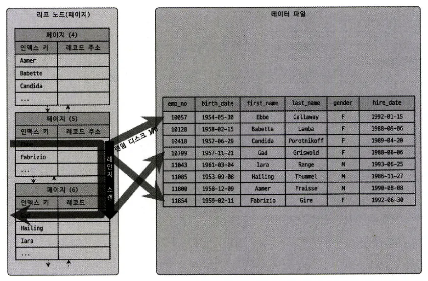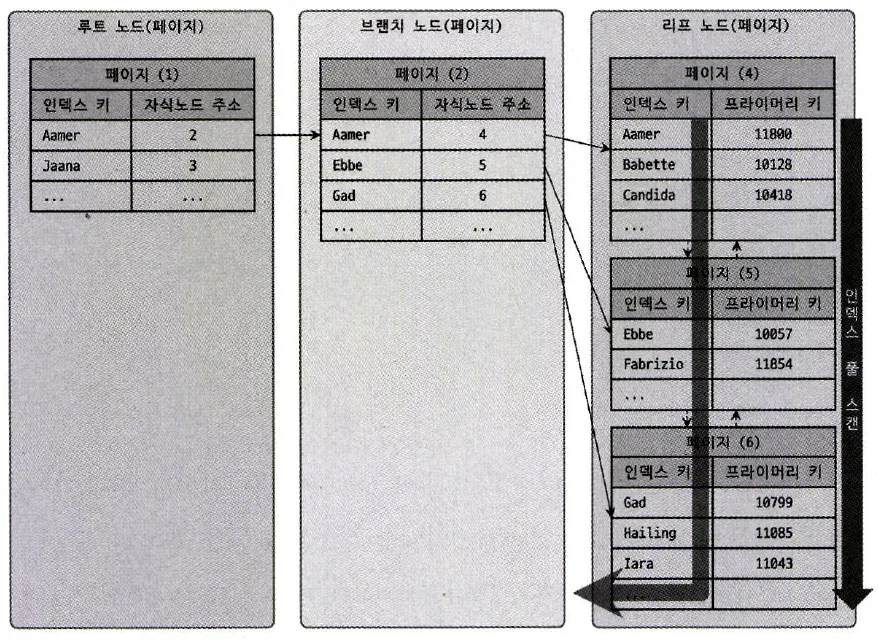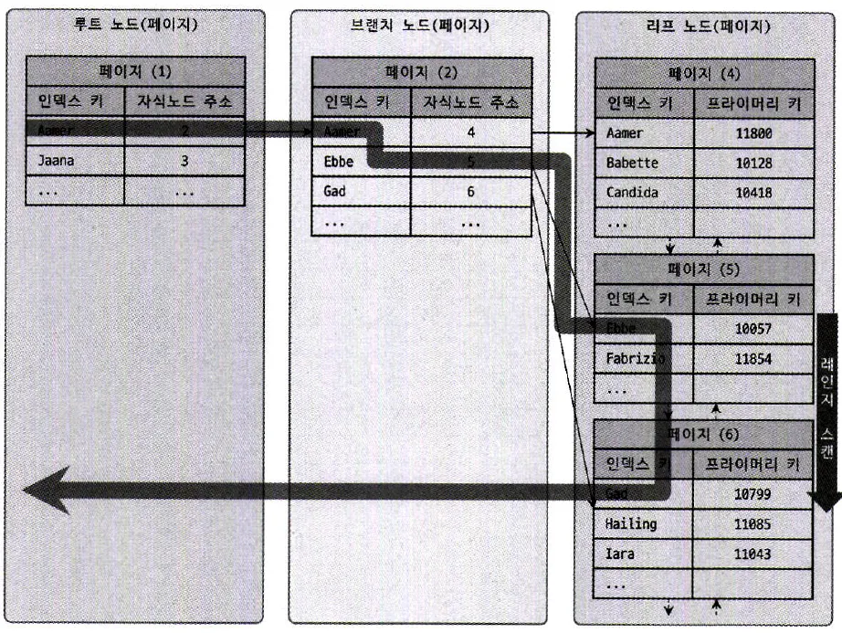 1번과 2번을 합쳐서 인덱스 스캔이라고도 함