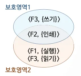 각 영역은 자원의 집합과 그 자원에 대해 프로세스가 할 수 있는 연산 정의