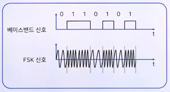 반송파 신호의 진폭은 일정하게 한 채로 베이스밴드 신호를 주파수 변화로 변화시키는 방법