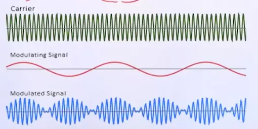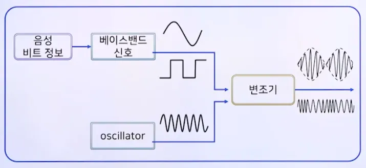 전송 신호(baseband signal)를 높은 주파수 대역의 반송파 신호(carrier signal)에 싣는 과정