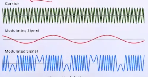 반송파 신호의 진폭은 일정하게 한 채로 베이스밴드 신호를 주파수 위상각의 변화로 변환시키는 방법