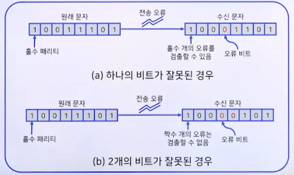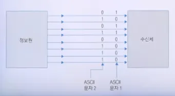 ASCII 코드 (7비트) + 패리티 비트(1비트)