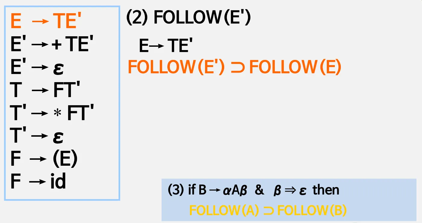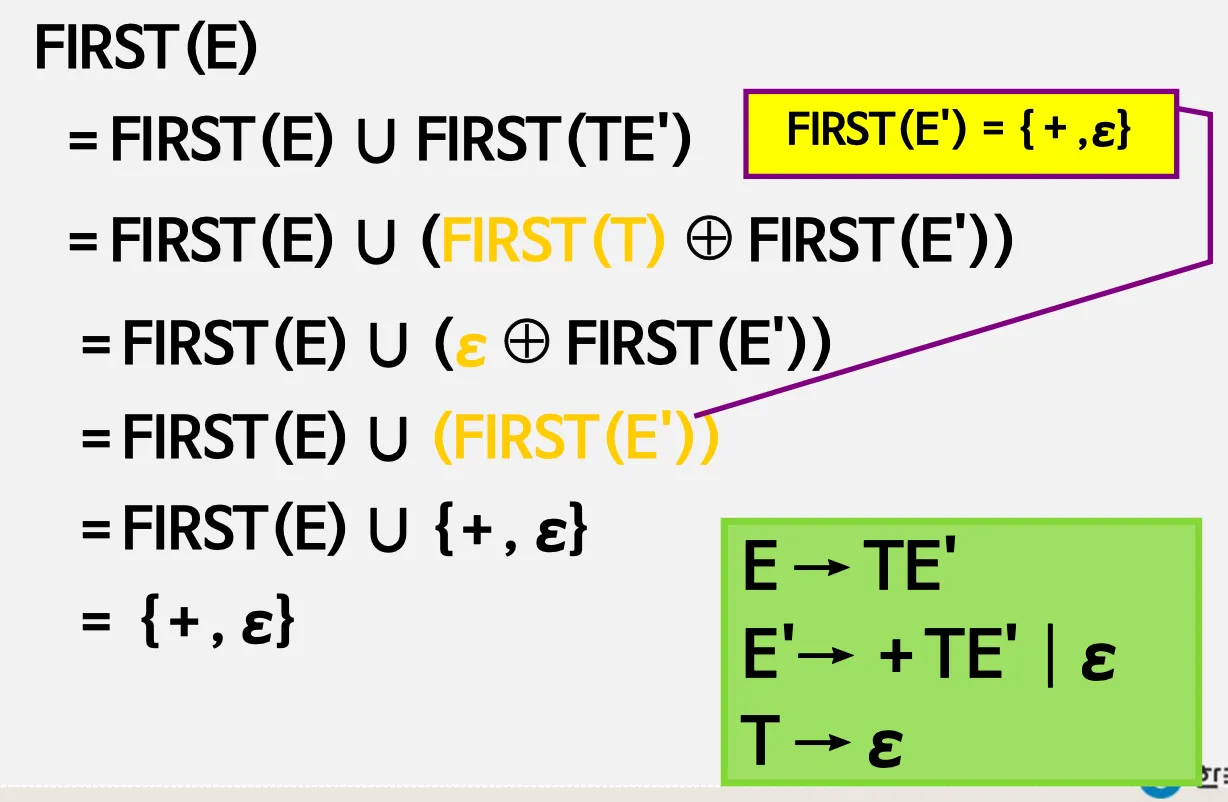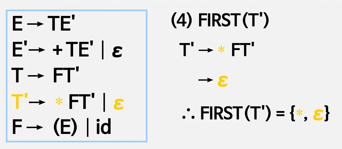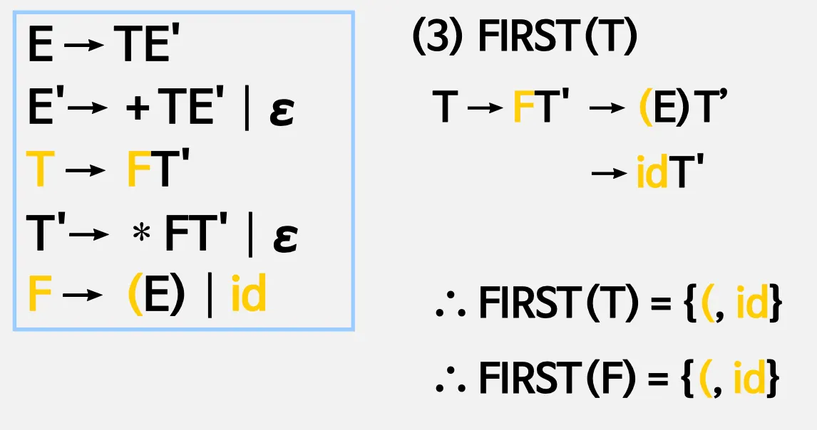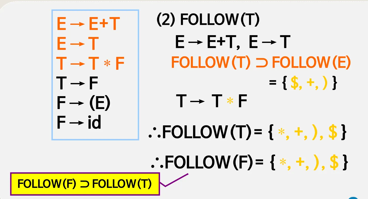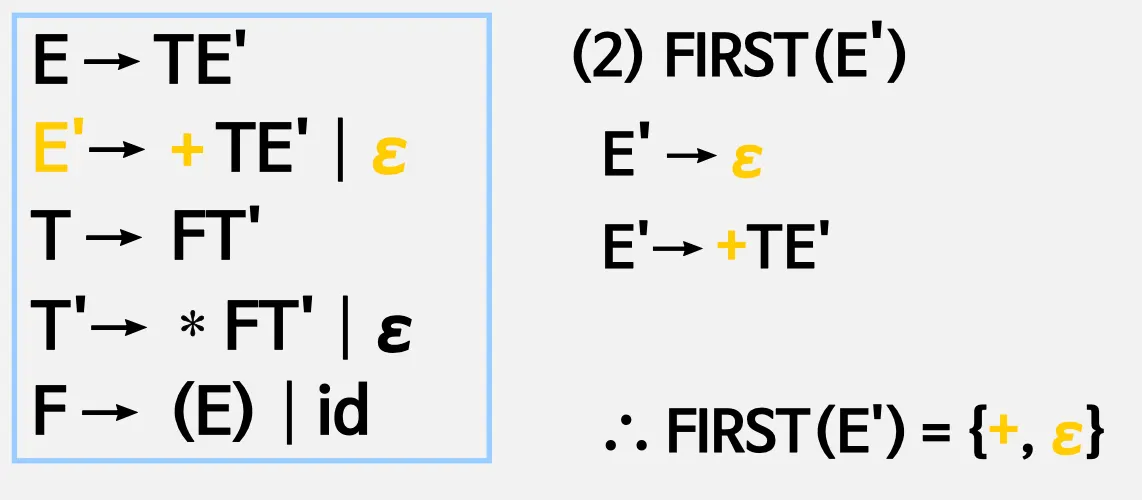 즉, 어떤 문장형태에 있어서, 논터미널 A 다음에 나타나는 터미널 기호들의 집합이다. 여기에서 $기호는 입력 문자열의 끝을 나타내는 기호