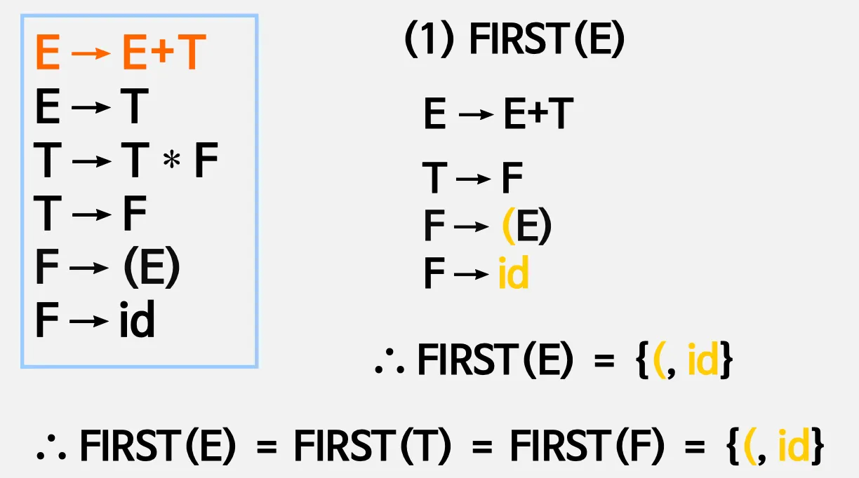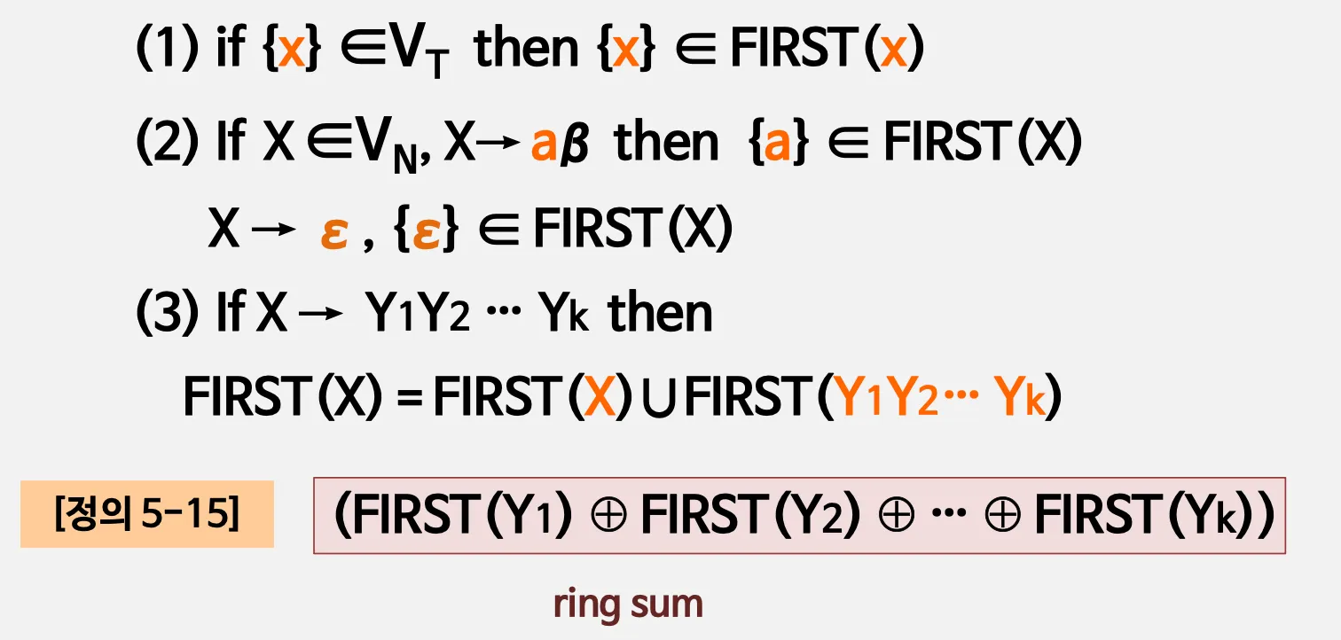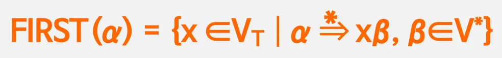 문자열 α로부터 유도되어, 첫 번째로 나타날 수 있는 터미널기호들의 집합